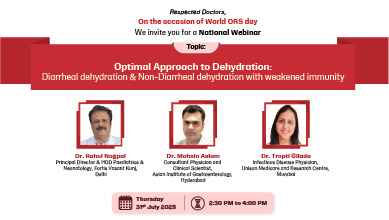 The role of Fluid, Electrolyte and Energy (FEE) management in aiding holistic recovery from various non-diarrheal illnesses along with the core treatment is evolving. Johnson & Johnson has been on a journey, partnering with experts to generate scientific evidences on role of FEE in patient recovery from non-diarrheal illnesses. These evidences have been curated by Johnson & Johnson to create a Certification program in partnership with Association of Physicians of India - Hydration & Recovery Masterclass. This program aims to consolidate evolving scientific evidences into clinically relevant, engaging modules, delivered succinctly by our esteemed speaker panel.